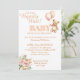Personalize este convite de chá de bebê do ursinho de pelúcia fofo com suas próprias palavras usando o botão personalizar. O convite apresenta um adorável ursinho de pelúcia fofinho flutuando com balões. Um spray floral adorna o canto inferior esquerdo. O verso tem um padrão de corações claros e escuros. Itens para festa coordenados disponíveis na minha loja!