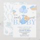 Apresentamos o nosso convite de chá de bebê "We Can Bearly Wait" do Menino Azul, uma maneira encantadora e adorável de convidar seus entes queridos para celebrar a chegada iminente do seu bebê. Este convite de chá de bebê apresenta uma deliciosa paleta de cores azuis e a frase emocionante "We Can Bearly Wait", criando um convite doce e alegre para a celebração do seu chá de bebê.