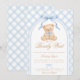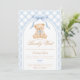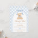 Doce e clássico, este convite de chá de bebê "mal podemos esperar" apresenta um adorável ursinho com laço azul contra um suave fundo xadrez azul — uma escolha perfeita para um chá de bebê de ursinho para menino. O padrão xadrez azul e a ilustração encantadora do ursinho tornam este convite uma opção cativante e atemporal para a celebração de um chá de bebê "mal podemos esperar" para menino.