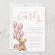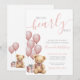 "Mal podemos esperar" define o tom deste convite de chá de bebê adorável, perfeito para celebrar a futura mamãe e sua bebê. Com balões de aquarela rosa, um ursinho marrom fofo com um laço rosa e uma caixa de presente rosa, este design é tão encantador quanto doce. As fontes são uma mistura de caligrafia elegante e serifada clássica, criando um visual sofisticado e equilibrado. As cores atuais das fontes são rosa e cinza, mas você pode personalizá-las, junto com o fundo, para combinar com o seu tema. Este convite versátil funciona durante todo o ano, adicionando um toque de elegância lúdica a qualquer celebração de chá de bebê. Os elementos de aquarela e o ursinho fofo tornam-no uma escolha deliciosa para homenagear a futura mamãe no seu dia especial. Convite de Chá de Bebê Menina com Balão Rosa de Aquarela e Ursinho - Mal Podemos Esperar.