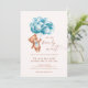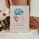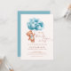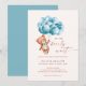 Convite de chá de bebê com ursinho fofo e balão azul.
