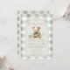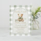 Celebre a chegada iminente com este adorável convite de Chá de Bebê Urso “Mal Podemos Esperar”. Com uma ilustração de urso doce, fundo xadrez verde sage suave e tons neutros elegantes, este convite é perfeito para uma celebração de chá de bebê aconchegante e charmosa.