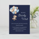Celebre o seu pequeno com este adorável convite temático de urso de pelúcia, apresentando um urso doce segurando balões azuis, marrons e brancos, é perfeito para um chá de bebê masculino. Cores suaves, fontes divertidas e detalhes personalizáveis tornam fácil definir o tom para uma celebração calorosa.