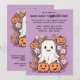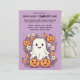 Este convite para festas de Halloween apresenta um design ao estilo cartoon delicioso com um fundo roxo lúcido. No centro estão quatro abóboras bonitinhas, cada uma com rostos sorridentes que trazem uma vibração quente e amigável para o tema do Halloween. Ao lado das abóboras está um fantasma alegre e amigável com uma expressão feliz, acrescentando um toque caprichoso à cena. Espalhados ao redor deles são pequenas margaridas, trazendo um charme suave e inesperado para o design geral. O fundo roxo proporciona um contraste vibrante com a laranja brilhante das abóboras e o branco do fantasma, fazer as personagens e ao mesmo tempo adiciona um toque mágico e festivo. As margaridas acrescentam um elemento doce e alegre, balanceando o tema do Halloween com um toque de capricho e alegria. No topo da frente, a legenda diz: "Você é Convidado para um Festa de Halloween!" O texto está em uma fonte divertida, estilo cartoon, que corresponde ao tom lúdico do convite e se destaca em relação ao fundo roxo. Abaixo da legenda, há espaço para detalhes personalizáveis como data, hora e local da parte, fazer fácil de personalizar para o seu evento. O verso do convite continua com o mesmo fundo roxo, oferecendo espaço extra para texto ou notas adicionais. Este espaço pode ser usado para incluir detalhes especiais como "Figurinos encorajados!" ou "Prepare-se para uma noite de diversão e guloseimas!" Esta design combina perfeitamente personagens bonitos e amigáveis com um pano de fundo roxo vibrante, fazer ideal para uma celebração feliz e memorável do Dia das Bruxas.