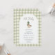 Mallard duck all in one gingham baby shower invitation featuring a charming duck illustration paired with classic gingham accents. Designed in a front and back double sided layout with coordinated artwork on both sides. Perfect for gender neutral or boy baby showers with a rustic countryside feel. Editable text for easy personalization. Print-ready layout.