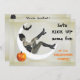 Um mama assustador do frankenstein, termina com as botas de couro pretas altas do joelho, restos contra uma lua crescente de prata na parte dianteira deste convite de festas exagerado, cómico do Dia das Bruxas. Um bastão preto voa sobre, e uma lanterna alaranjada de incandescência do jaque o senta-se na parte inferior. O texto, em preto e em alaranjado, diz deixou-nos retroceder acima algum divertimento em nosso partido do Dia das Bruxas! A parte traseira do convite guardara seu texto personalizado do partido entre três bastões pretos. Divertimento!