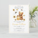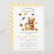 Temática de abelha floral de girassol amarelo de aquarela com ursinho de pelúcia bonitinho com convite para chá de fraldas neutro em termos de gênero.
