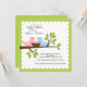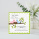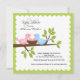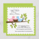 Comece seu evento bem com nosso convite de Chás de fraldas múltiplos e giros apresentando um pássaro de mãe e pai sentado em um galho de árvore com seu ninho com ovos de pássaros gêmeos cor-de-rosa. Definido em um fundo verde de citros com um painel de centro redimensionado. Este convite é perfeito para um chá de fraldas de meninas gêmeas. Disponível em nosso compro com ovos cor-de-rosa e azuis para um chá ou chá de criança. Apenas personalize com suas informações e você está pronto para ir! Itens correspondentes, incluindo chás de fraldas postais, adesivos de favoritos, cartões de agradecimento e obrigado que você também está disponível em nosso compro.