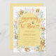 O convite de chá de bebê "Mommy to Bee Cute" estende um convite sincero às famílias que estão iniciando a bela jornada da paternidade, evocando uma sensação de alegria e expectativa enquanto se reúnem para celebrar a chegada iminente de um pequeno tesouro. O encantador tema de chá de bebê das abelhas infunde a ocasião com um charme caprichoso, transportando os convidados para um jardim mágico onde adoráveis abelhas pequenas adejam em meio a uma moldura delicada de flores silvestres em aquarela. Criado com um estilo moderno rústico boêmio, esse convite promete uma celebração verdadeiramente única e inesquecível, onde cada detalhe fala de amor e calor. O motivo divertido "Mommy to Bee" adiciona um toque de doçura ao evento, celebrando a jornada da maternidade com afeto sincero. Enquanto os convidados se reúnem em meio às flores, eles são envolvidos em um jardim de delícias, onde o ar está repleto de risadas e a promessa de novos começos. E enquanto uma das abelhas se senta em um pote de mel, simboliza a abundância e a doçura que aguarda a família em crescimento, criando um momento de pura alegria e expectativa. Para personalização avanç