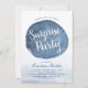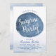 Crie uma impressão única com este convite de festa de aniversário surpresa atraente. Ele apresenta uma mancha azul estilizada em estilo aquarela em direção ao centro. Abaixo desta mancha azul há um espaço para seus detalhes exclusivos em azul-marinho escuro.