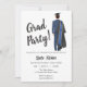 Ilustrações de graduação em aquarela com jovem com vestido e boné de graduação. Modelos de texto editáveis para adicionar seus próprios detalhes.
