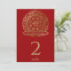 Convite Mandalá Vermelho e Dourado Número de Mesa Indiano