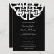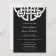Envie o convite perfeito para o seu dia especial com este belo design preto e branco clássico com um nó celta branco clássico e um modelo de fácil edição em uma fonte de serif de boné ousada com uma bela fonte de script para os nomes. Este design único de convite para atendimento é um fato que se destaca.