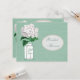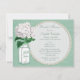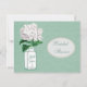 Convites elegantes de chá de panela em tom de menta com um adorável pote de vidro branco e verde e ilustração de flor de hortênsia branca vintage em um fundo de juta estampado em tom de menta moderno e elegante. No verso dos convites há um glamouroso tapete de pérolas brancas e renda com texto verde para personalizar com os detalhes do seu evento. Convites sofisticados, modernos e fashion perfeitos para chá de panela na primavera, verão, outono e inverno. Novas tendências de cores para casamento! Tenho produtos combinando na minha loja. Todo o texto pode ser facilmente personalizado para atender às suas necessidades e você pode alterar o estilo, cor e tamanho da fonte, se desejar. Se precisar de ajuda para personalizar seu produto, entre em contato comigo através da minha loja e ficarei feliz em ajudar. Tapete de pérola por ©Hazel Kinvig-Paul www.design-a-dream.co.