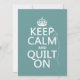 Aqui se lê "Manter Calmo e Desligar", no estilo do clássico "manter calma poster". Há uma agulha perfurando as letras, com o fio balançando. É um design brilhante e caprichoso que apela a todos que amam colcha.