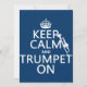 Aqui se lê "Manter Calmo e Trompete ligado", no estilo do clássico "manter calma poster". Há uma silhueta de trompete descendo nas cartas. É um belo design, excelente para trompetes e professores.