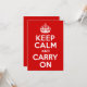 Versão moderna de "Manter Calmo e Continuar" vermelha e branca do poster clássico.