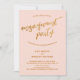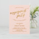 Esta distinção arrojada e simples deve-se à fonte moderna e casual escrita à mão usada para frases de sotaque e ao padrão de ondas soltas colocado sobre o fundo. As ondas são feitas para evocar os festejos. Nesta peça, a letra de escrita manual foi usada para criar um gráfico com as palavras "festa de noivado". Tanto o texto do cabeçalho como o padrão de fundo foram embelezados com um padrão de folha de ouro. Use os campos modelo para adicionar seus detalhes pessoais e fazer deste design festivo seu. O fundo cor-de-rosa pincelado pode ser alterado para qualquer cor que você preferir. Por favor, responda a quaisquer solicitações especiais ou personalize a assistência. 100 //