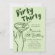 Retro Green Hand Desenhou O Convite De Aniversário De Martini Sujo, Festa de aniversário Adulta De Cocktail, Festa de aniversário Adulta De Tini Bit Mais Velha, Festa de aniversário Suja De Martini, Suja 30 Coquetéis Do Partido.
