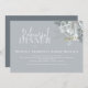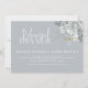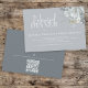 Este design apresenta uma cor aquosa azul-poeirento folhagem floral, um código QR com instruções para o evento online de janto de noivos de ensaio, moderna letra de um script de caligrafia elegante, simples rosa botânico verde-verde simples, moderna letra de tipografia minimalista, estilo de primavera de verão no outono, romântico elegância suave simplista, endereço web adiciona seu URL, na noite anterior