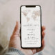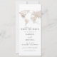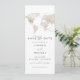 Esta opção de salvar a data apresenta um mapa do mundo da cor d'água bege, uma combinação simples de fontes e uma foto opcional no verso com um espaço para o seu site de casamento. Esta data salva é perfeita para o seu viagem, destino ou aventura casamento ou evento temático. Para alterar o local do coração, role para baixo na seção de personalização e selecione a opção azul 'clique para personalizar mais'.