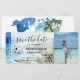 Passagem de Ônibus de Casamento na Praia Destino Bilhete de Embarque Dourado com ilustração de praia de palmeiras com pintura em aquarela, México ou qualquer outra localização tropical. Adicione seu Código QR e foto