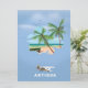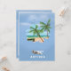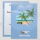 pôster de viagem do mapa da Antígua de um velho barco de pesca em uma praia.