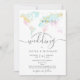 Planejando um casamento em um destino romântico? Convide seus convidados com este lindo convite de tinta pastel com um mapa mundial e seu destino personalizado marcado com o coração móvel.