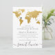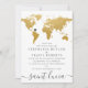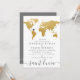 Convite Mapa Mundial de Casamento no Exterior Dourado Chic