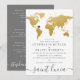 Convite de mapa mundial dourado chique e moderno para um casamento com tema de destino ou viagem - mova o coração para qualquer local e adicione o nome da cidade ou país na parte inferior para criar um convite de casamento elegante em dourado e cinza. —— Clique em PERSONALIZAR MAIS para mover o coração, alterar a cor do fundo e do texto, mudar as fontes ou reorganizar tudo e criar seu próprio design usando nossa arte exclusiva de mapa com efeito de folha dourada. —— Perfeito para locais de casamento de destino tropicais, praias, ilhas, cidades, montanhas e aventuras em todo o mundo. Confira nossa loja de design para itens coordenados!
