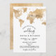 Convite Mapa Mundial de Destino de Casamento Dourado Coraç