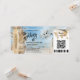 Destino Ilha Tropical Bilhete de Embarque para Casamento na Praia Passagem Aérea Dourada convite de casamento com RSVP, coração e ícone de avião com abacaxi. Adicione seu código QR