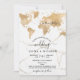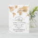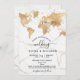 Planejando o casamento no destino romântico? Convide seus convidados com este lindo convite com mapa mundial dourado e seu destino personalizado marcado com o coração móvel.