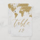 Convite Mapa Mundial Dourado Número de Mesa Casamento de D