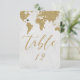 Convite Mapa Mundial Dourado Número de Mesa Casamento no D