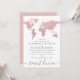 Convite de casamento de destino com mapa-múndi cor-de-rosa discreto com marcador de localização em forma de coração que pode ser movido para marcar a localização do casamento e criar um convite elegante com tema de viagem cor-de-rosa e cinza para recepção local em casa ou casamento de destino.