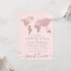 Mapa mundial cor-de-rosa e dourado-rosado com marcador de localização de mapa do coração editável tema de viagem convite para recepção local ou casamento de destino.