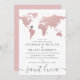 Convite Mapa Mundial Tema de Viagem Casamento Rosa Corado