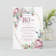 O modelo Elegante do Convite de aniversário 80 apresenta uma estrutura dourada e dois arranjos de rosas cor-de-rosa embebidas. Todo o texto é editável. Este item faz parte da Exquisite Pink Mauve Floral Collection. Ele contém modelos que você pode usar para criar um conjunto de convites exclusivo e suprimentos de festas.