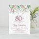 Modelo Elegante de Convite de aniversário 80 apresenta uma luxuosa borda botânica superior de flores cor-de-rosa. Todo o texto é editável. Este item faz parte da Exquisite Pink Mauve Floral Collection. Ele contém modelos que você pode usar para criar um conjunto de convites exclusivo e suprimentos de festas.