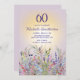 Elegante e artístico 60º convite de aniversário para mulheres com flores silvestres coloridas a aquarelas e folhagem em fundo púrpura macio com sol brilhando ao fundo. Bonito convite no estilo country. Entre em contato comigo para obter assistência com a personalização ou para solicitar correspondência ou coordenação de produtos Zazzle.