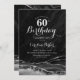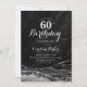 Preto e prateado agata 60º convite de aniversário. Elegante design moderno com aquarela agate marble geode background, faux glitter prata e tipografia. Trendy convida o cartão perfeito para uma comemoração de dia das mulheres na moda. Impressos convites Zazzle ou modelo de impressão digital instantânea para download.