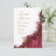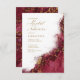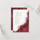Um fundo de abstrato que lembra o mármore em tons de burgundy veinados com ouro reluzente é o pano de fundo para textos elegantes e layouts modernos de design nos pedaços desta bela suíte de casamento. O convite mostrado aqui apresenta o texto acima mais o texto de script de fluxo opcional de 'Chá de panela' e um modelo para adicionar os detalhes de evento pertinentes. Procure ID644 para ver todas as peças de coordenação neste conjunto.