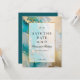 Casamento de na moda moderno Salve a turquesa de mármore com convite de data com poeira de ouro ativada com efeito de derrame de ouro (o ouro é um efeito digital, não uma folha real!) e caligrafia moderna. Clássico e elegante, simples e moderno convite.