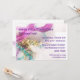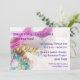 Convite festivo para sua festa Mardi Gras com miçangas coloridas, máscara roxa e penas. Fácil de personalizar com os detalhes do evento.