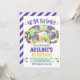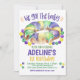 This invite embraces the traditional Carnival palette of purple, green, and gold, paired with festive Mardi Gras elements (masks, beads, confetti) — perfect for a Louisiana-style celebration or themed baby birthday party.