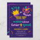 Celebre a estação do Mardi Gras e o excitante gênero revelado do seu pequeno com este vibrante e festivo convite! Com uma máscara colorida Mardi Gras e design da coroa, este convite é perfeito para anunciar se o seu bebê é um rei ou uma rainha. Com as cores clássicas do Mardi Gras, ele vai encantar seus amigos e família com o estilo clássico do Mardi Gras! Que o entusiasmo comece!