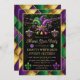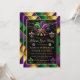 Design Elegante, Dourada, Roxa e Verde do Mardi Gras, com chapéu de carnaval, luzes e diamantes com fundo abstrato.