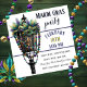 Customize this Mardi Gras party invitation featuring an antiqued gas lamp, hanging mardi gras mask and mardi gras beads. Add additional information for your guests on the reverse of this invite.