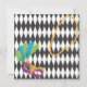 Beautiful and colorful Mardi Gras or Masquerade Party Invitation with shiny beaded necklaces and feathered masks. Harlequin patterned background for your copy. Great for any masked party! Hand drawn illustration by McBooboo.